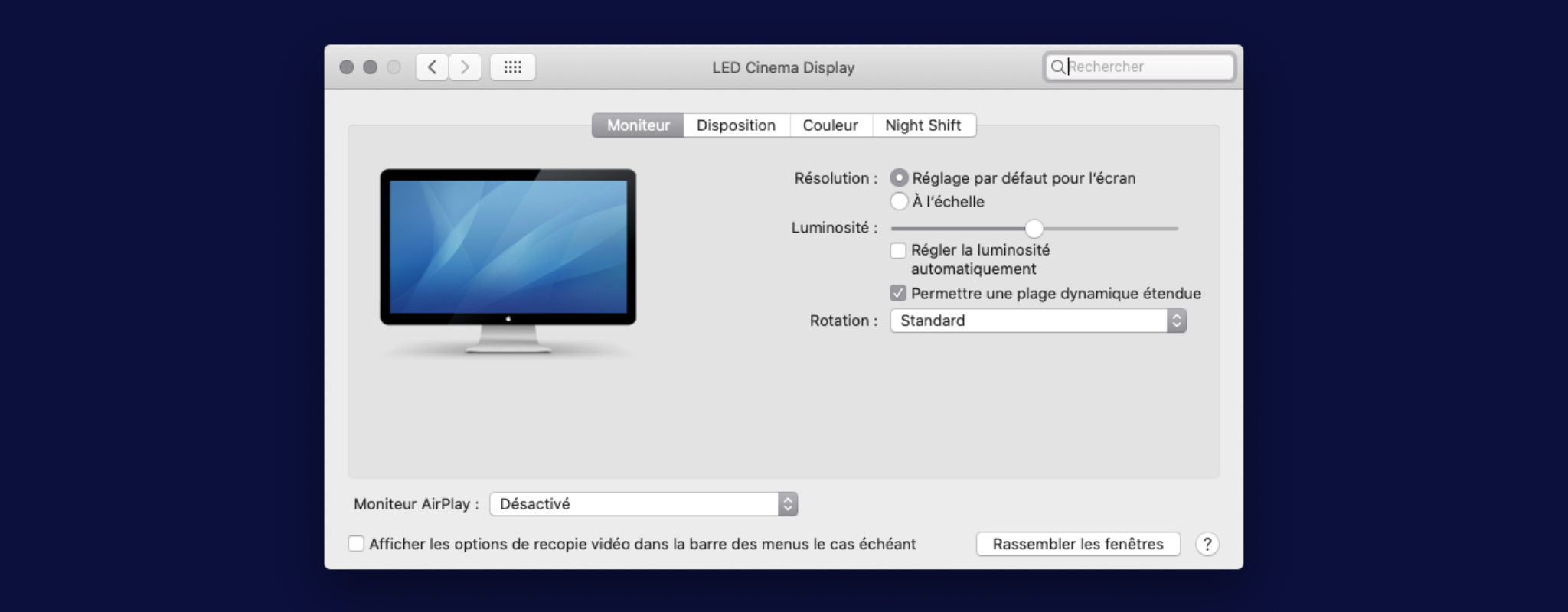 Une fois le moniteur sélectionné, vous pourrez adapter les réglages comme la résolution, la luminosité et le profil de couleur...