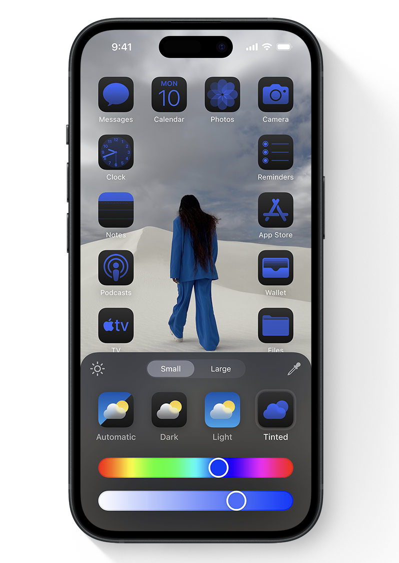 • Customiser les app en choisissant la couleur de votre choix (une option permet d'ajuster la couleur des app à celle de votre fond d'écran),