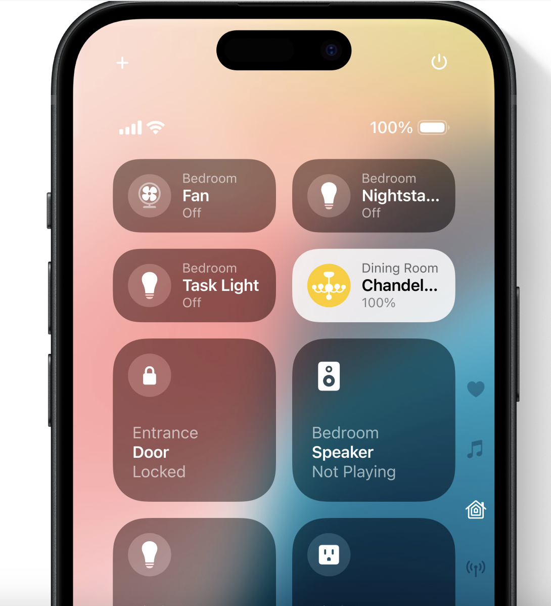 Aussi, si vous swipez vers le bas, vous aurez un accès direct à votre application de musique (Apple Music, Spotify, Deezer...). Vous pourrez personnaliser les interfaces, qui défileront de haut en bas. Vous pourrez y ajouter par exemple les accès direct aux commandes de la domotique de votre maison.